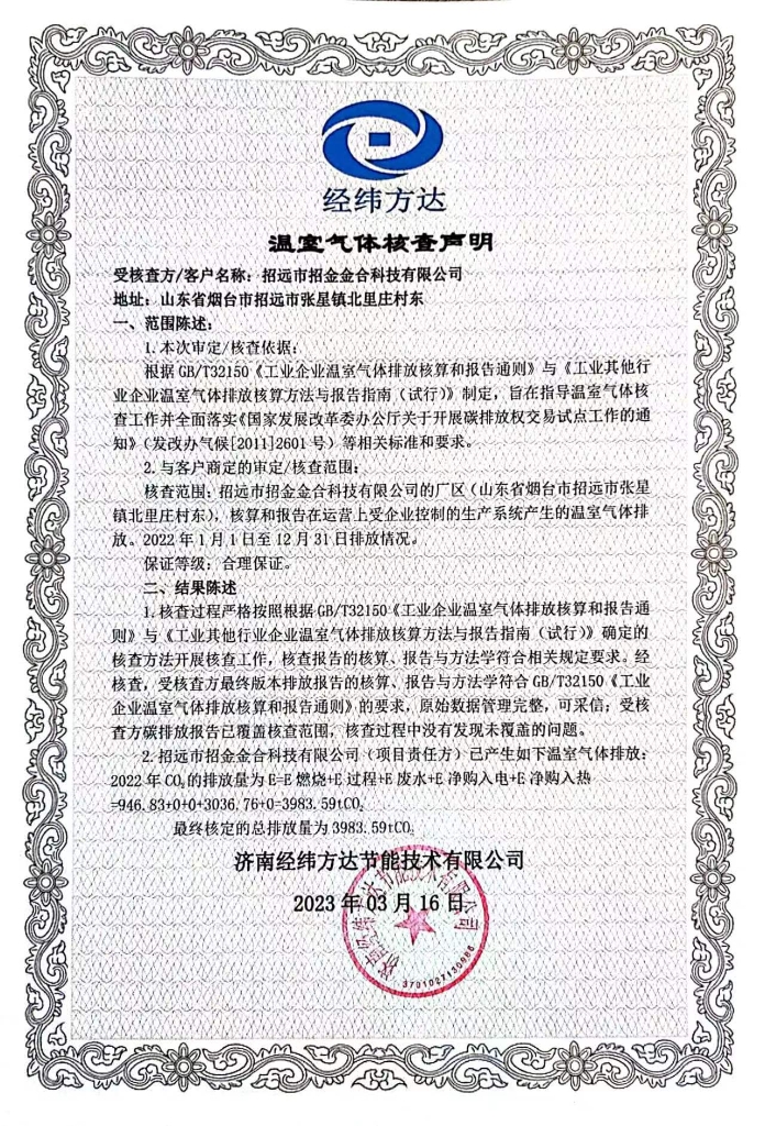 附件:凯发k8天生赢家一触即发金合温室气体核查声明