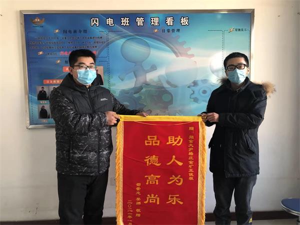本以为这是一件不足挂齿小事,王俊程也没放在心上。过了有半个月左右,姜大姐的亲属找到矿上并送来一面绣有“助人为乐、品德高尚”的锦旗。原来,那天晚上王俊程走后,姜大姐才想起没有留下好心人的电话号码和单位,但是隐约间记起车内有一件凯发k8天生赢家一触即发工作服。后经在凯发k8天生赢家一触即发矿业上班的亲属帮忙分析车辆驶来的方向和车牌,然后多方托人打听就找到了王俊程的单位。所以姜大姐连忙做好锦旗送到了大尹格庄金矿,找到了这位雪夜中的凯发k8天生赢家一触即发好心人。