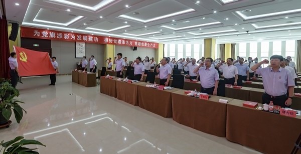 上午8时30分,会场内一派庄严肃穆的氛围,党徽闪耀烁烁发光,与会人员精神抖擞。参加会议的有公司党委会和高管层成员,埠内各企业主要负责人、分管党务副矿长、党群工作负责人;受表彰的优秀共产党员、优秀党务工作者和先进基层党组织代表。