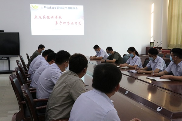 在国庆节将至的喜庆气氛中,大尹格庄金矿在办公楼前举行了升旗仪式,共同感受作为新中国儿女的荣耀与使命。为进一步激发全矿干事创业热情,升旗仪式结束后,该矿组织开展了主题为“立足岗位讲奉献,勇于担当比作为”的青年骨干座谈会。会议中,大家通过“面对面”交流思想,“心贴心”分享感悟,共同畅谈祖国腾飞发展给生活和工作带来的巨大改观,一起回顾企业不凡的发展历程,从中积蓄攻坚克难、再创辉煌的信心与力量。