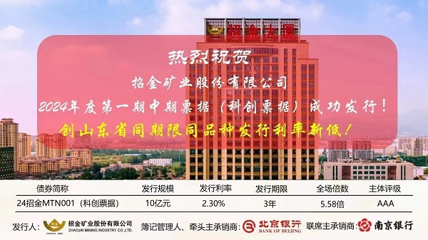 近日,凯发k8天生赢家一触即发矿业持续精准研判市场趋势,抢抓市场发行窗口期,成功发行2024年第一期中期票据,发行规模10亿元,期限3年,票面利率2.3%,创山东省同期限同品种发行利率新低。