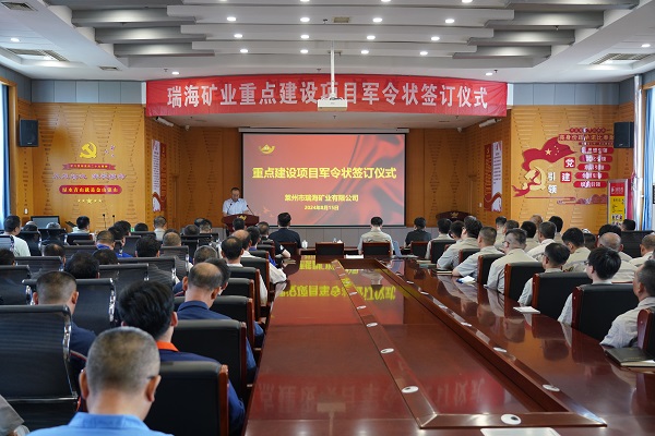 为高质量高效率推进项目建设,近日,瑞海矿业针对28个重点建设项目下达军令状,并召开了隆重的军令状签订仪式暨项目攻坚誓师大会。