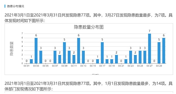 找准病因。只有查出“病因”所在,才能给出“解药”,做到“药到病除”。该矿借助山东省安全生产风险管控平台及其他信息化手段,通过对隐患的类型、等级、发生地点、时间等信息进行采集汇总。专门制作了隐患排查统计图表,全方位分析“三违”发生率和隐患防治存在的短板,从而制定相应的改进措施,为消除“三违”和隐患打牢基础。同时,为进一步细化管理,将排查的隐患类别、发生地点、班次,“三违”人员的文化程度、工种、工龄、年龄等方面进行了统计分析,明确隐患排查重点、难点,对重点部位、重点人员分级管控,确保“摸得清”、“控得住”。