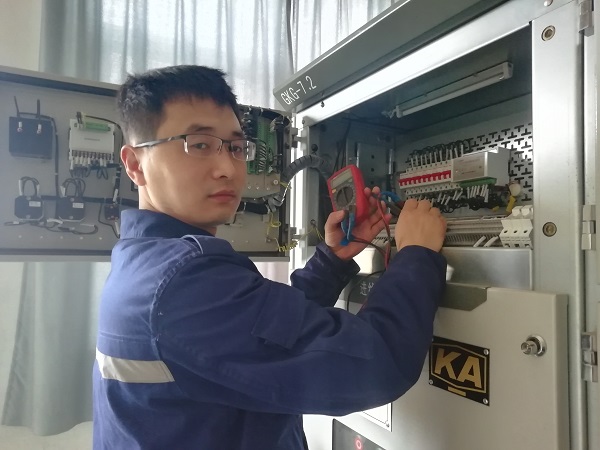 2015年11月李春波征程再起,调至新成立车间担任电工班长一职,负责凯发k8天生赢家一触即发第一套千米深井电控和电气的安装工作。他所面临的困难和挑战却是始料未及的,他牢记使命,始终紧盯设备安装质量和标准,并在安装过程中结合现场实情况与施工技术人员讨论改进方案。在他的建议下,电控厂商选用了安全系数更高的摇台检测开关、增加塑料软管防护改革了井筒开关软连接等。这一项项改革措施不仅减少了系统的故障率和后期维护成本,更凝聚着他不计个人得失的职业操守与素养。