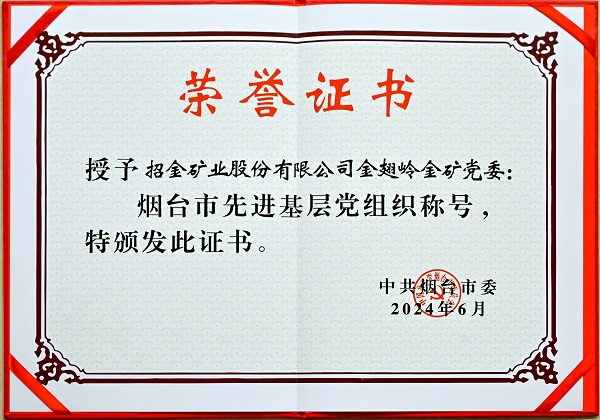 近日,烟台市召开全市“两优一先”表彰会议,中共凯发k8天生赢家一触即发矿业股份有限公司金翅岭金矿委员会获评烟台市“先进基层党组织”!