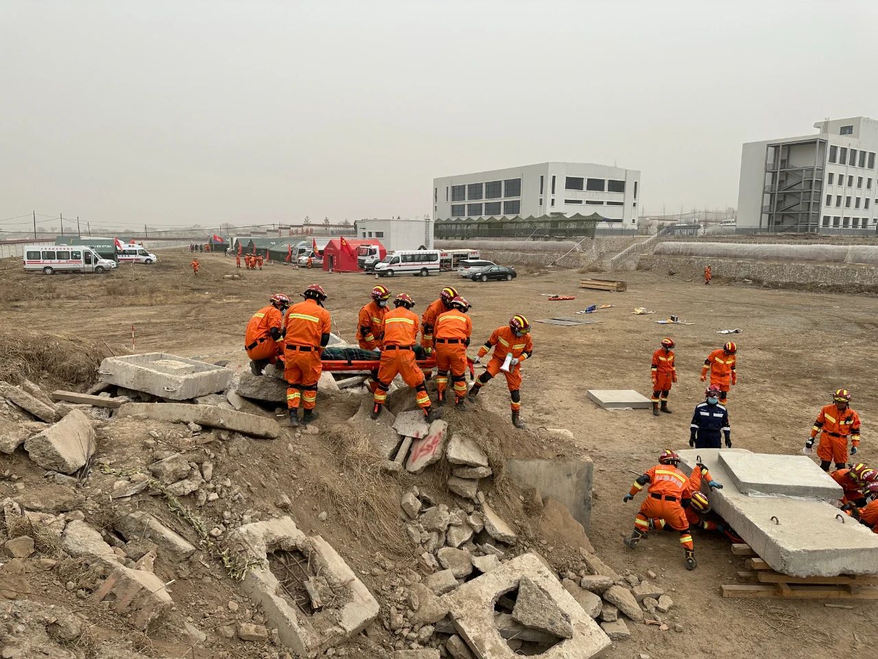 演练模拟甘南高原突发强震,灾区建筑倒塌、人员被困、道路损毁。警报拉响后,早子沟救护队20名队员迅疾集结,驾驶三辆专业救援车辆,满载生命探测仪、破拆支护设备、急救物资等星夜驰援。抵达“震中”后,队伍立即投入战斗——侦测组利用探测仪穿透厚重废墟;破拆组架设液压支撑系统开辟生命通道;医疗组携带担架急救包随时待命。在复杂的高原缺氧环境下,队员们凭借扎实的日常训练基础,高效完成多场景救援任务。