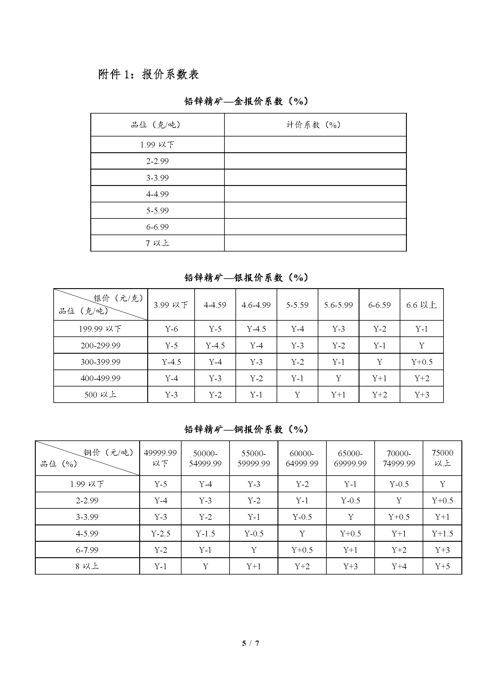 综合单价=金品位*系数*前一日平均价格+银品位*系数*前一日平均价格+铜品位*系数*前一日平均价格+铅品位*系数*前一日平均价格+锌品位*系数*前一日平均价格